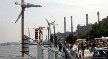 CitySol Sunday, 13 August from 12 Noon to Sundown. East 23rd Street & the East River, NYC. CitySol, a summer music and market series on Manhattan's East River waterfront is powered by the belief that bringing environmentalism to New York means first putting more New York into the environmental movement. The urban lifestyle, contrary to popular belief, is the most sustainable form of living in terms of energy and resource consumption. It's true that the ecological footprint of our city is broad and deep, but New York is also a global hub of cultural, commercial and technological imagination, and ideas and applications of sustainability are in no short supply. Citysol celebrates the idea that greening New York is about unleashing, not taming, the city and its energy. Each free all-day event includes: renewable energy-powered live music featuring emerging NYC acts, interactive exhibits showcasing key innovations, practices and policies for New York's sustainable future, and a green lifestyle marketplace offering apparel, electronics, household goods, media and much more. Music Performers MKL Egg Foo The Himalayan Marching Band Vasilli Gavre & Emme Monica Sharp DJ Sascha Marc-Alan Gray Kudu Ocote Soul Sounds Market/Vendors aGaiN NYC - accessories made from repurposed materials 5C Cultural Center & Bailey's Cafe - center for education, activism, and the performing arts Bicycle Paintings Birdbath Bakery - organic bakery with a sustainable storefront Bluestockings Bookstore - bookstore, cafe, and activist center Bright Power - consultants in energy efficiency and solar energy Delano Collection - sustainable luxury apparel and homewares Doie Designs - eco-friendly loungewear Eco-logic - online resource for sustainable living in NYC Ecologic Advisors - environmental investment advisors Farmer Kids - organic clothing for babies and kids Fizzy Lizzy - all-natural sparkling fruit juice gomi nyc - eco-friendly clothing and accessories Good Magazine - a new voice for doing well by doing good Green Map System - global eco-cultural mapmaking movement interrupcion* - community for social change through socially responsible choices Just Food - working to develop a just and sustainable NYC food system Lower East Side Ecology Center - recycling, composting, and environmental education center Lower East Side Girls Club - girls' community center and Sweet Things Bake Shop Lucky Dog Designs - blank books handmade from waste paper Mad Imports - fair trade accessories from Madagascar and Kenya NYC Fair Trade Coalition - market-based movement for equitable trade o2nyc - global network for sustainable design Peripheral Media - t-shirt silkscreening promoting social transformation Pro'tech'd - sustainable clothing and accessories Reiter 8 - bags made from reused sails Sambazon - acai fruit and juice from the Brazilian Amazon Satya Magazine - vegetarianism, environment, animal advocacy, social justice Savon Cafe - handmade soap Solar 1 - solar-powered green energy, arts and education center Vivavi - contemporary sustainable furniture and design Wee to Three - eco-friendly toys Exhibits Green Roofs Congestion Relief Pricing Zero Waste Hybrid Taxis Wind Power CitySol is about celebrating New York's potential to dream and act big as it charts its course to a more sustainable future. In this spirit, Solar One connected with Situ Studio to design and fabricate a series of large-scale installations that would bring focus to key green policies and innovations that evrey New Yorker should be excited about. The goal was to generate pieces that would inform and provoke while also providing functional and aesthetically compelling elements to the outdoor venue. We sought to make the ideas come alive by building them into the space itself. Installation subjects were considered on the basis of their applicability and availability vis-a-vis a number of our City's most chronic environmental and quality of life challenges -- most notably, poor air and water quality, escalating energy use, the urban heat island effect, climate change and unacceptable waste generation. Green roofs, congestion relief pricing, hybrid taxis, renewable energy, and zero waste planning are among the most sensible solutions that New York could move to implement today, and therefore were chosen to been rendered for CitySol's 2006 season. The completed installations resulted from an extensive research, design and construction process that involved not only Situ and Solar One, but also the invaluable contributions of several subject experts, dedicated volunteers, and generous material suppliers. All of the materials used for the constructions were recycled and/or environmentally friendly. Nearly two thousand cardboard tubes used to build the solar pavilion were intercepted from the waste streams of construction sites and carpet dealers. Used tires were pulled off of the banks of the East River. Six model wind turbines were made with reused materials and environmentally-friendly foam and resin. Additional seating came from a large recylcing plant located just outside of the city. Go to www.citysol.org for more information >> |