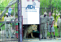 Travelling thousands of miles to ensure safe passage for the rescued animals, it is the support of ADI adopters that have meant that new sanctuary enclosures can be built and safe transport provided. Adopting Tarzan, Toto the chimp, or Sarah and Caesar the lions means a brighter future for other animals that ADI can rescue. Caesar the lion is a huge, inimitable king of beasts and certainly caused ADI rescue officers to take a shocked step back when he gained energy after rescue and became a towering, physical presence in the transport containers. Yes, ADI were thrilled to see him alert and strong but it also gave them a key reminder to keep hands outside the crate at all times!