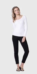 This long sleeved scoop neck t-shirt is cut for a relaxed fit. Made from super soft 100% organic cotton which feels like luxury next to the skin. Available in white and navy. This t-shirt is a fine Interlock made from 100% organic cotton. This exclusive cotton is knitted to combine durability and exceptional softness. Thread count: 50/1. Weight:170 gr/m2. Care Instructions: wash at 40 degrees. Do not tumble dry. Please see more info for size guide.